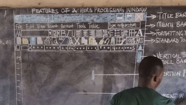Word on a Blackboard, no, non è il nuovo album degli Editors. In realtà è quello che sta succedendo in questi giorni alla Betenase M/A Junior High Schooldi Sekyedomase, in una zona rurale del Ghana, in cui un professore di informatica sta insegnando ai suoi ragazzi l’utilizzo e le regole base di Word su una lavagna.