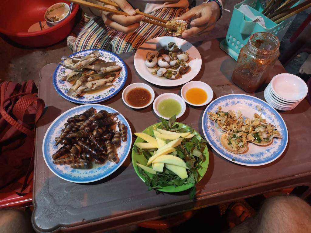 Ritornando alla questione degli odori: com’è possibile che qualche bar, sì sì va bene in strada, ma com’è possibile che una brioche o un paninetto da sbocconcellare facciano tanto odore? Si mangiassero Gocciole e croissant alla crema certo la questione sarebbe diversa, ma ad Hà Nội mai che le sia capitato niente del genere: si apre a colazione con una bella ciotola di Phở bò (brodo di noodles e carne), e si chiude alla sera con una scodella di Bún chả (noodles, maiale alla griglia e verdure), lumache, involtini primavera, spiedini di carne, di pesce o di fritti misti, stufati di verdure rice on the side. Cafferino al pomeriggio? Rigorosamente Cà Phê Trứng (caffè all’uovo). Ecco spiegato quell’amalgamarsi di odori che permeano la città da mattina a sera, di notte pure, ininterrottamente.