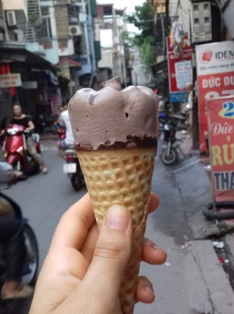 Compra un gelato Algida, un Cornetto, al supermarket del centro, giusto perché la diverte l’idea di protrarre ancora un pochino quella dissociazione che ormai sente sua: camminare nel centro della capitale del Vietnam con un gelato Algida. Si piazza le cuffie, Radiohead, e pian piano si incammina nella direzione di casa, della casa dove è ospite ora. Solo una cosa nota sulla via del ritorno, solo un pensiero le resta appiccicato in testa per tutto il tragitto: Hà Nội è una città che non si spegne mai, nemmeno di notte.