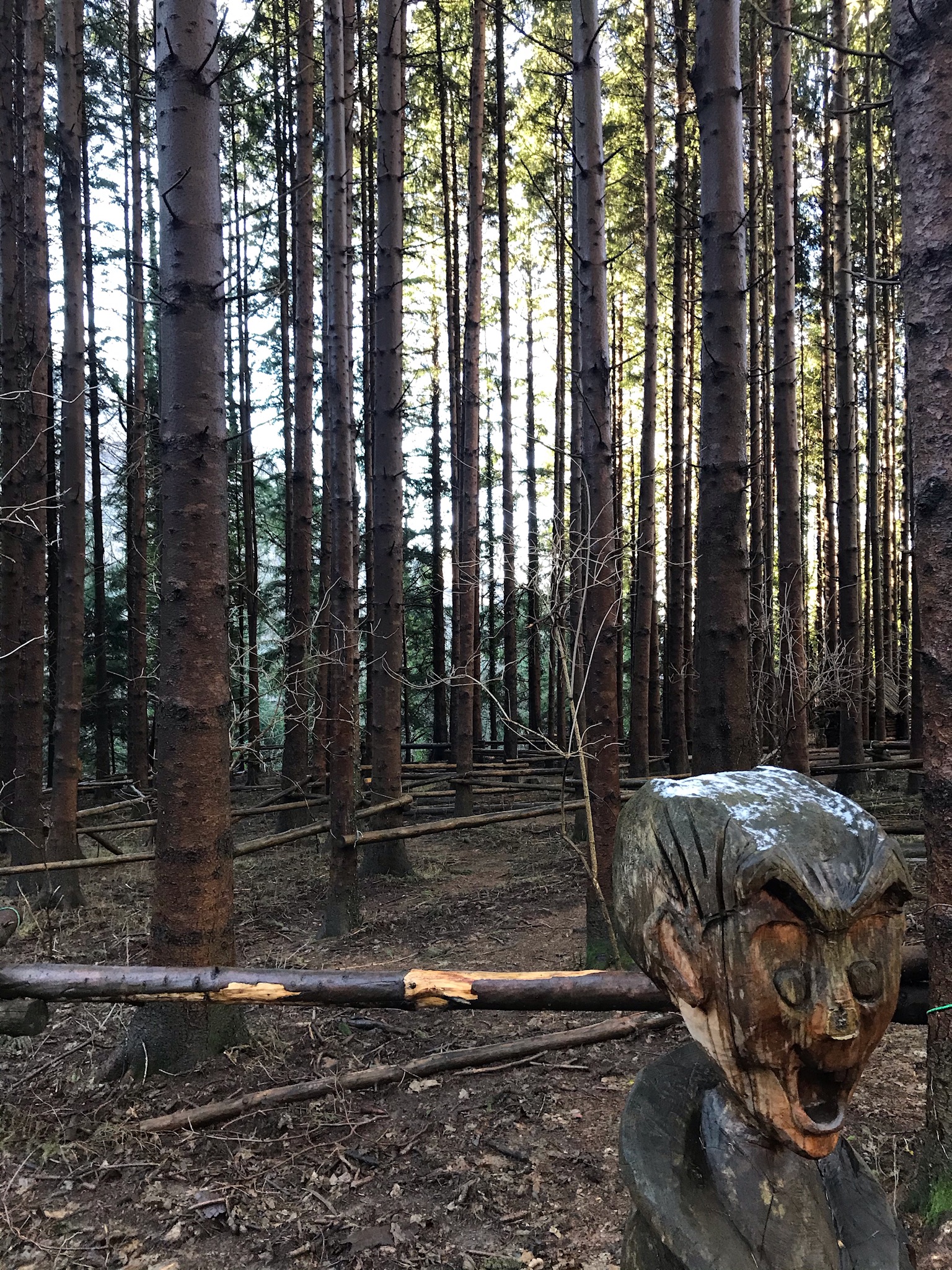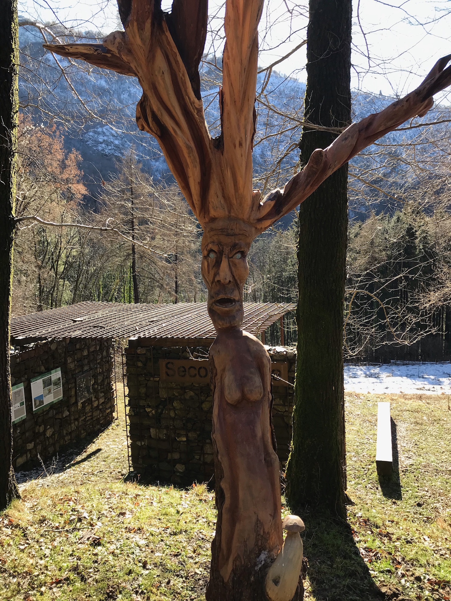 Sono parte integrante dello scenario, non avrebbero senso al di fuori di quel sentiero e allo stesso modo il sentiero non avrebbe senso senza di loro. Nei 30-45 minuti di percorrenza s’innesca nel camminatore il desiderio di scovare tutte le statue, anche quelle più nascoste e meno evidenti. La magia del bosco accompagna i miei passi e dopo una serie di «Eccone un’altra!», «Guarda là sopra», «Anche qui!» sbuco con mia grande sorpresa in un labirinto.