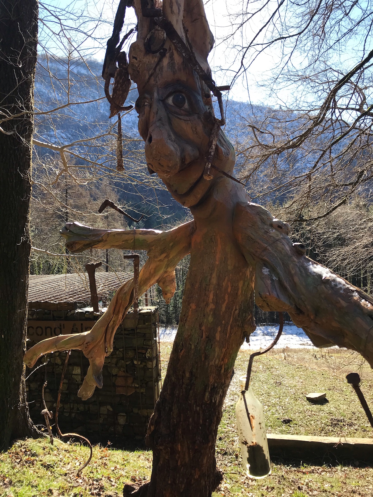 Draghi, casette, gnomi, maghi e amanti abbracciati sul ramo di albero accompagnano l’escursionista in un percorso magico e avvolgente, adatto per tutte le età.