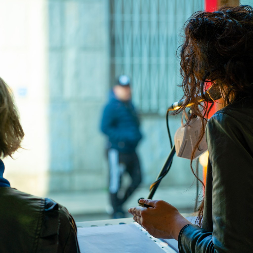 «Nel mese di gennaio 2021 abbiamo deciso di lanciare una call, Through the Window, rivolta ad artisti, creativi, ricercatori con la voglia di condividere e sperimentare un intervento pensato e inserito in luogo specifico, la vetrina di Ventunesimo. Abbiamo lasciato a disposizione una parte del nostro studio per un determinato lasso temporale entro il quale ciascun artista ha potuto lavorare a una personale ricerca rendendola fruibile attraverso la vetrata».