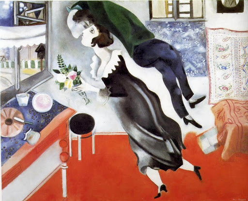 Le prossime righe vogliono semplicemente tentare di rendere omaggio, attraverso tre dei suoi dipinti, all’amore del pittore Marc Chagall e di sua moglie Bella Rosenfeld.