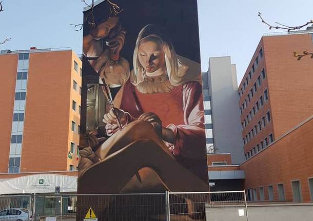 Una delle ultime opere realizzate per la città di Varese si trova all’ingresso dell’Ospedale di Varese; per questo spazio, tristemente al centro dell’attenzione da oltre un anno, Ravo ha scelto un quadro di Georges de La Tour che ha come soggetto San Sebastiano curato da Irene. È evidente l’attenzione dell’artista nello scegliere il soggetto più adatto a lanciare un messaggio a chi, per caso o per iniziativa, si troverà davanti alla sua gigantesca opera. Ravo decide di raccontare la cura e sceglie come foglio bianco l’enorme muro di un ospedale, luogo di cura per antonomasia.
