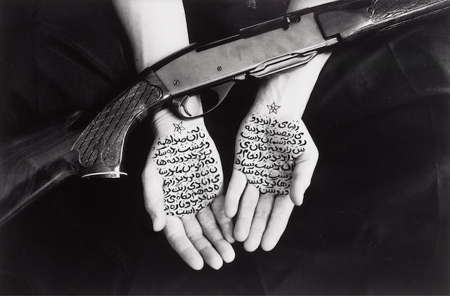 Shirin Neshat nasce in Iran nel 1957, in un Paese molto diverso da quello che appartiene all’immaginario comune: a quell’epoca le donne vivevano una condizione di libertà non dissimile dalla libertà occidentale. Nella seconda metà degli Anni Settanta Shirin Neshat lascia il suo Paese per studiare negli Stati Uniti; farà ritorno in Iran solo nel 1990, ma nel frattempo la situazione è radicalmente cambiata: a seguito della rivoluzione del 1979 erano state emanate delle leggi fortemente restrittive nei confronti delle donne, le quali potevano tenere scoperti solo il volto e le mani. Questo drammatico cambiamento di rotta che aveva inciso, sopra ogni altra cosa, sulla vita delle donne, porta Shirin Neshat a intraprendere una lotta silenziosa, ma incredibilmente determinata, per i loro diritti: la sua arma è la macchina fotografica, perfetto strumento di documentazione e denuncia.