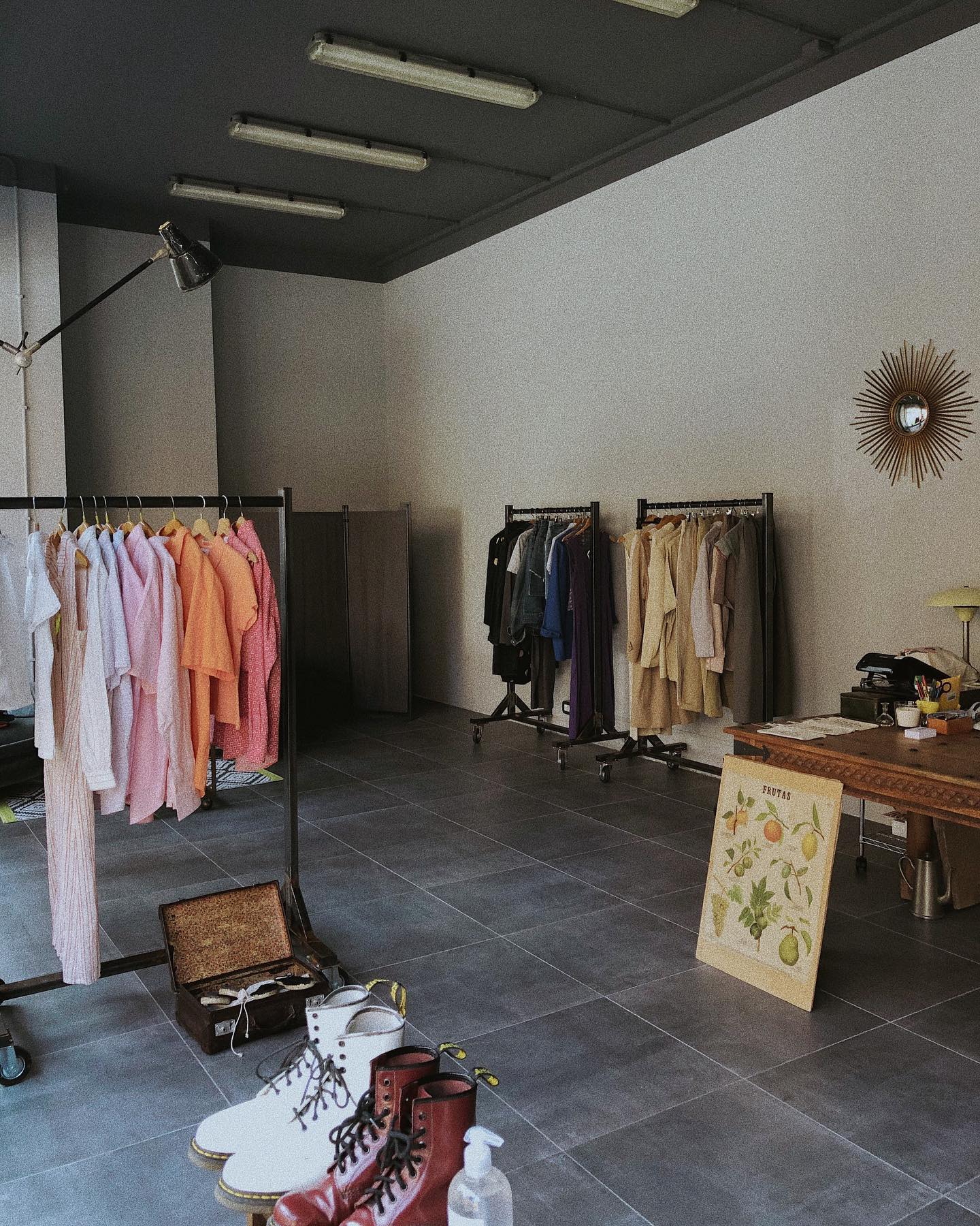 Un posto caldo, colorato e accogliente dove si respira un’atmosfera Anni Ottanta. Tra poltrone di pelle e foulard di seta riposano puliti e stirati abiti di seconda mano, pronti per iniziare una nuova vita.