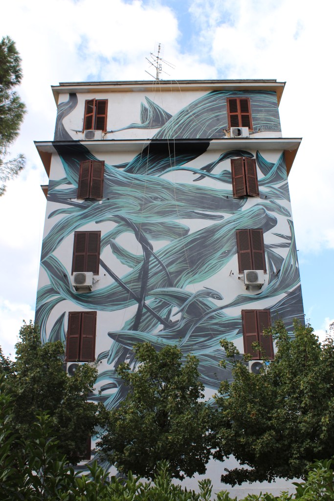 Il museo condominiale di Tor Marancia è senz’ombra di dubbio un caso di riqualificazione urbana ben riuscito, uno di quei casi in cui ‘l’arte di imbrattare i muri’ ha dato i suoi frutti migliori; i murales sono tutti incredibilmente belli e stupiscono per la varietà di soggetti e di stili. Ma non sarebbe potuto essere altrimenti: ogni murales è un mondo, una facciata esterna che racconta a sua volta un’infinita varietà di mondi, quelli interni, celati dietro alle mura.
