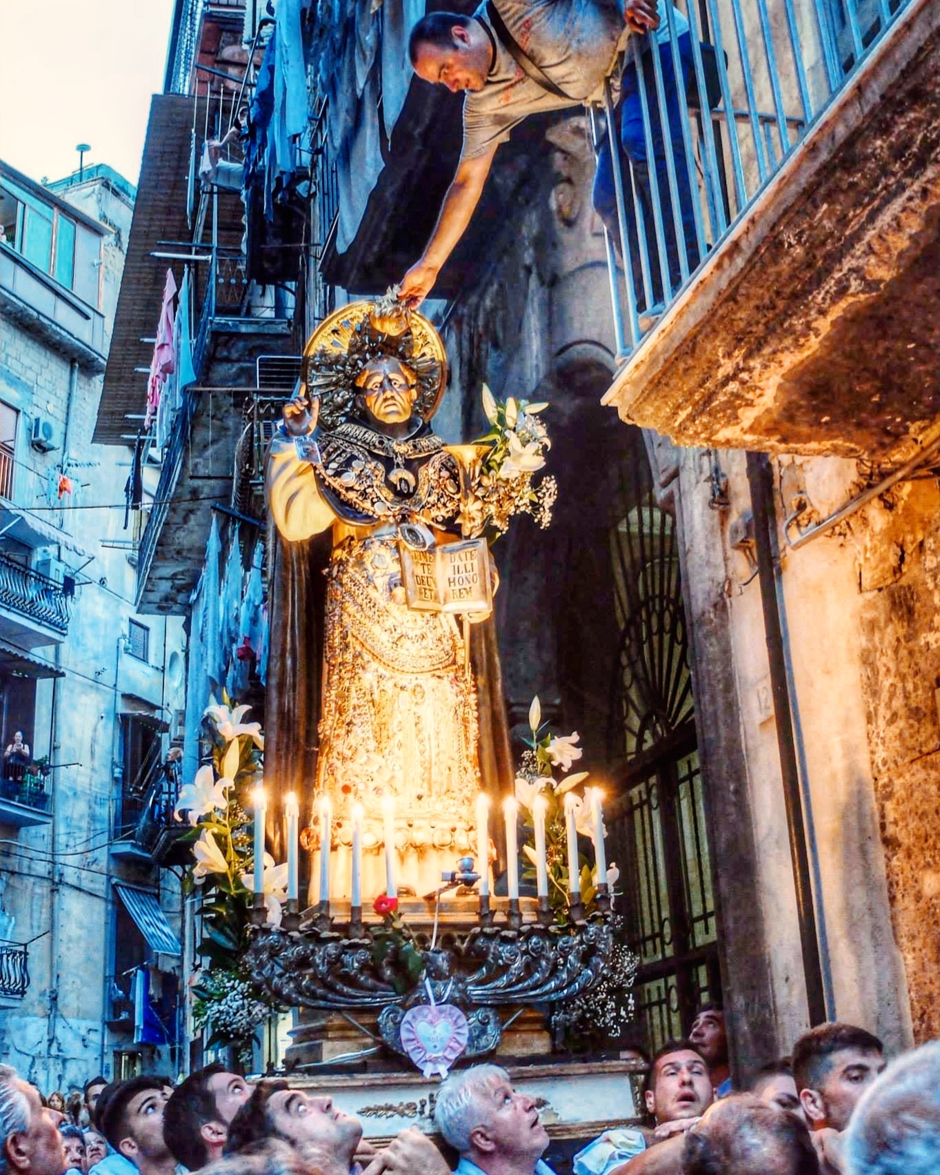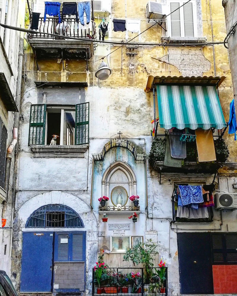 Le due catacombe principali sono quelle di San Gaudioso e di San Gennaro, patrono della città. Una volta finito il tour sotterraneo, dove la religione si intreccia con la superstizione, si risale verso il centro del rione, dove ogni spazio esprime autenticità: negozi, caseggiati, luci, edicole votive. Tra le opere moderne si visita anche il memoriale per Genny Cesarano, ucciso nel 2015 in una sparatoria della camorra. Il giorno dopo l’omicidio cinquemila cittadini e cittadine sono scesi in strada per dimostrare che avrebbero continuato a combattere per difendere la rinascita di Sanità.