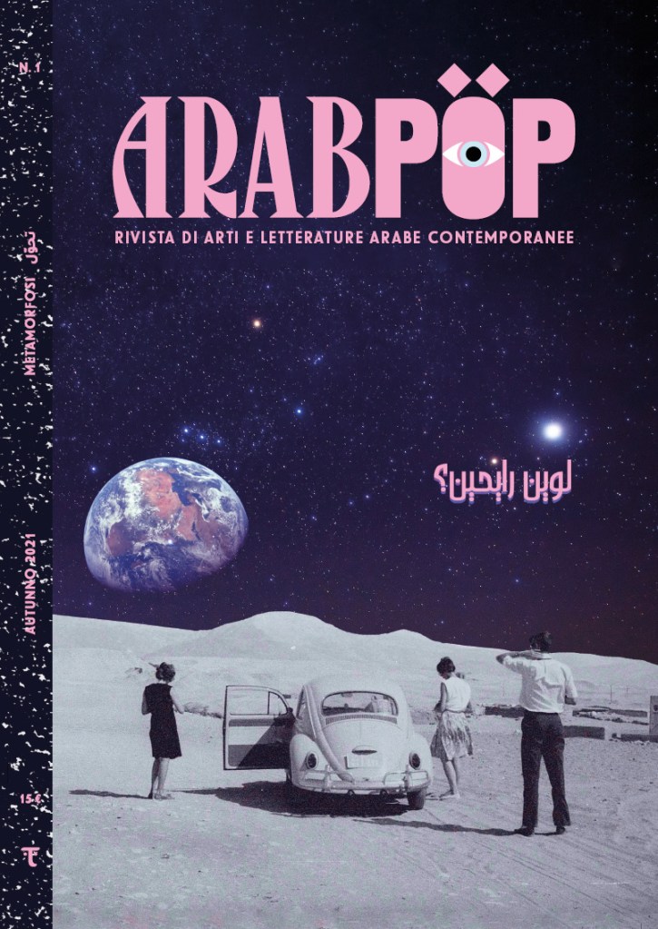 Arabpop. Rivista di arti e letterature arabe contemporanee è una nuovissima rivista indipendente tutta italiana, nata nel 2021 e che, ad oggi, si costituisce di due numeri: quello dell’autunno 2021 dedicato al tema della metamorfosi e il numero due, uscito in primavera, il cui topic è il futuro. L’intento di questa rivista è quello di raccontare a un pubblico occidentale, nella fattispecie italiano e, di conseguenza, in lingua italiana, il mondo arabo con le sue mille sfaccettature. Arabpop vuole smontare tutti i falsi miti e gli stereotipi legati alla cultura araba, eliminare i filtri occidentali alle lenti degli occhiali con i quali siamo abituati a guardare a questi paesi e, sopra ogni altra cosa, raccontare un mondo poliedrico e ricchissimo che non potremmo immaginare neppure lontanamente, per il semplice fatto che in Occidente arriva quasi sempre e solo il lato negativo di questo mondo.