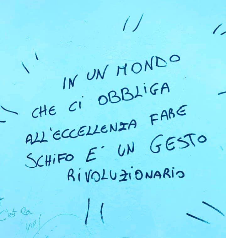 Come possiamo invertire la rotta? La soluzione è normalizzare il fallimento e la necessità di prendersi il proprio tempo per ripensare maggiormente al proprio benessere ridisegnando le nostre priorità. Non si tratta di inciampare e perdere terreno nella competizione con gli altri, ma di rendersi padroni di sé stessi. Come dice Willie Peyote, in questa società votata alla perfezione e alla produzione senza tregua fare schifo è un dovere morale.