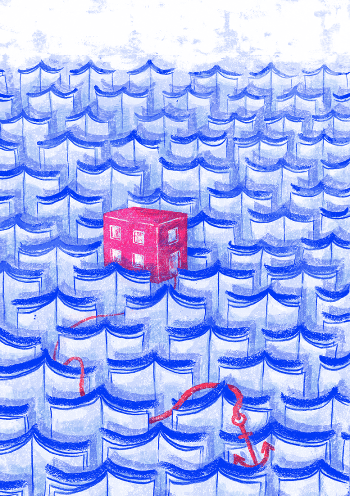 A Lampedusa, l’isola italiana più vicina all’Africa che all’Italia, tra le stradine tutte simili su cui si affacciano molte casette di pescatori, vi è un edificio che interrompe il paesaggio: un basso cubo di cemento interamente ricoperto da un murales, azzurro come il mare, che tutto circonda e assorbe, e con moltissime tartarughe, il simbolo dell’isola. Questo cubo colorato ospita l’unica biblioteca di Lampedusa, progettata nel 2012 e aperta nel 2017.