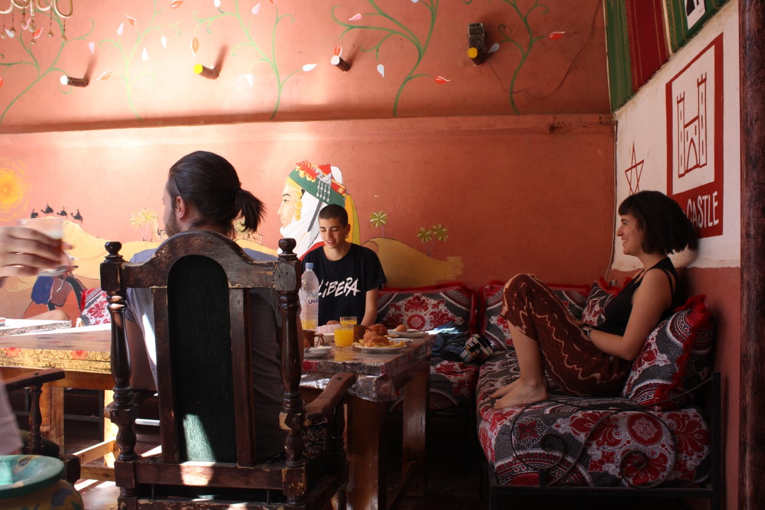 grandi sorrisi accoglienti, a chi ti porta in moto nel traffico senza conoscerti a cercare di ritrovare il tuo portafoglio. A giovani da tutto il mondo, da Spagna, Germania, Canada, Australia, Italia. Da tutto il mondo riuniti lì a parlare, con gli occhi grandi e belli e pieni di voglia di vedere tutto il mondo e raccontarlo. Chitarre, divani dai cuscini colorati, gatti, odori, sudore, sigarette, frutta e merendine condivise. I racconti di chi a trent’anni appena ha visto mezzo mondo e viaggia con la lentezza che, forse, permette di viaggiare per davvero.