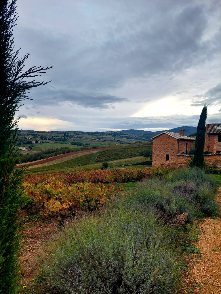 Sono le tre di pomeriggio di una giornata soleggiata di Ottobre. Una scia di vento al profumo di lavanda svolazza sulla terrazza di Denicé, nel Beaujolais, in Francia.