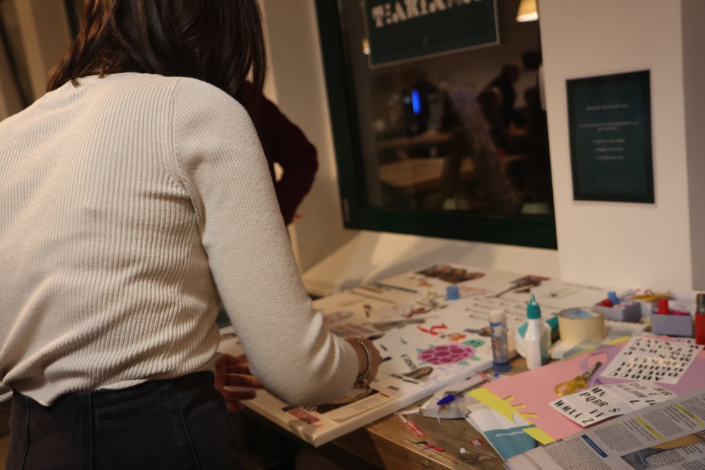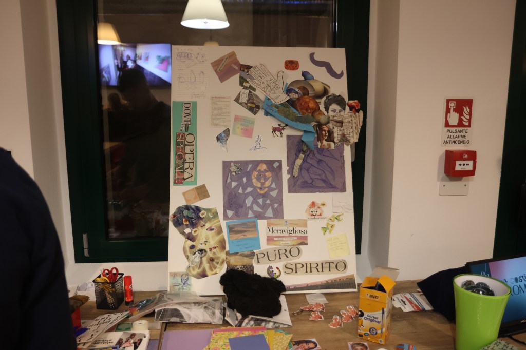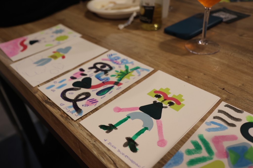 Chi va a un Dromo, inoltre, sa che potrà anche ‘sporcarsi le mani’ in prima persona: tornare bambino per un attimo e lasciare correre la fantasia nelle attività creative proposte durante l’evento. «Il Dromo non è solo una mostra, ma vuole coinvolgere attivamente chiunque abbia voglia di mettersi in gioco», aggiunge Marco. «A ogni evento, ad esempio, proponiamo una Grande tela tzariana: un’opera collettiva, nata da un’idea di Elisa Smeraldo, basata sulla tecnica dadaista del collage, in cui chiunque può scrivere e incollare ciò che vuole. Lo scopo è quello di creare una fotografia artistica dell’evento: è un’opera che nasce e finisce durante il Dromo e che dopo non può più essere modificata». Poi c’è il Tavolo creativo, dove Nicoletta Peracchi e Sara Chiarella propongono a ogni evento attività diverse. Come quella dell’ultimo Dromo, dove i partecipanti sono stati invitati a immaginare una possibile mascotte per il collettivo, componendo a proprio piacere i ritagli di carta con le lettere della parola Dromo.