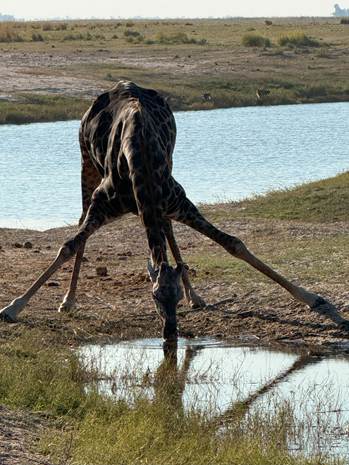 Il fuoristrada sobbalza sulle piste sconnesse. La sabbia cede, le pietre fanno saltare i corpi. Qualcuno ride, ma il vento smorza i suoni. Quando un altro veicolo appare all’orizzonte, i motori si spengono. Silenzio. Le guide si salutano in Tswana, voci basse, musicali. Quel ee, sì in Tswana, che sembra un canto. Per un attimo restano solo gli uccelli. Poi i motori ripartono e la polvere si dissolve lenta.