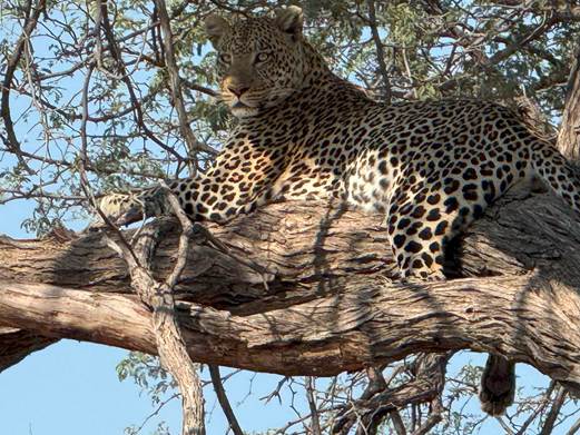 Il leopardo osserva dall’alto, tra i rami dell’albero. La preda è nascosta, al sicuro. Si muove agile e potente, si fa le unghie con lentezza.
