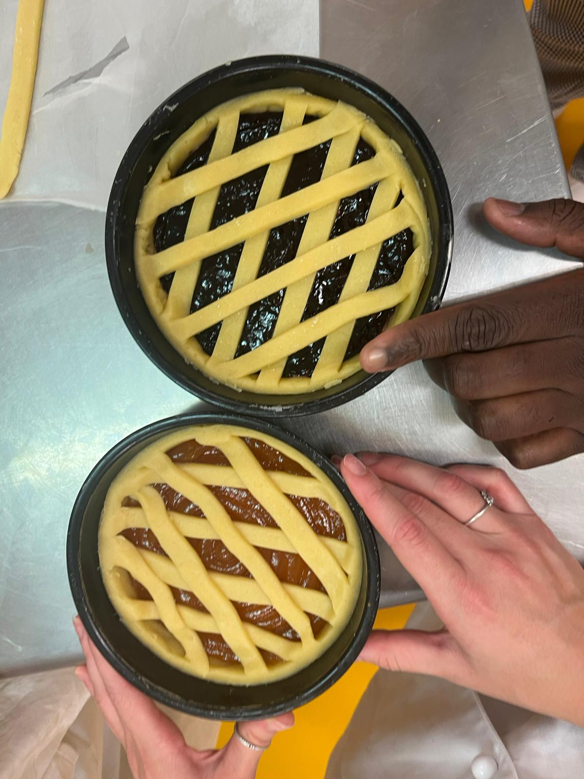 In una cucina che ormai frequentiamo più di casa nostra, tra una battuta e un vaffanculo. Le mani appiccicosicce e la pancia piena di zucchero.