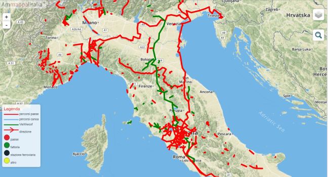 L’Italia è interamente percorribile a piedi, chiunque conosca sentieri brevi, lunghi, facili o difficili, può segnarli su questa mappa comune, cosicchè chiunque possa usufruire del percorso.